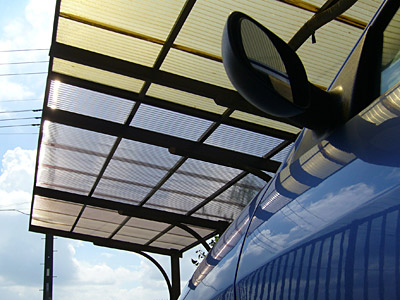 まだ日差しは相当きついし、第一見映えが悪いので、はやめに修理しておきたかった。波板は昨日の時点で届いていたので、朝からさっそく取り付け作業。
