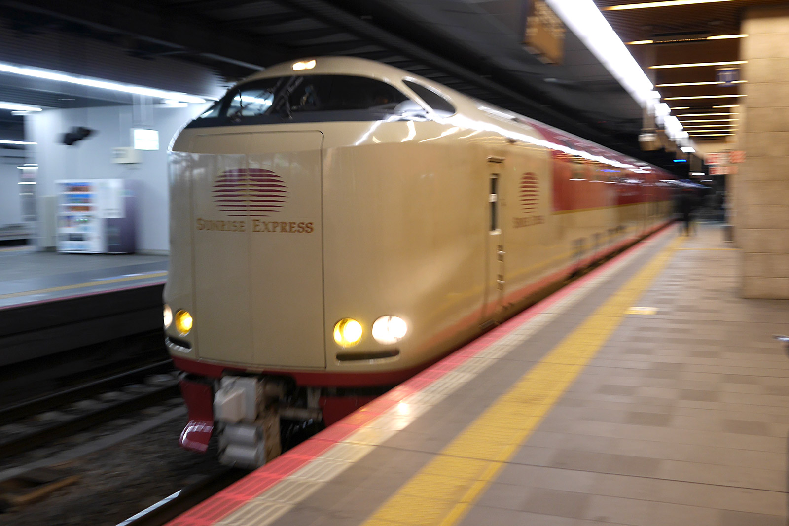 11時半頃に店を出て、まだ「薬師堂節分お水汲み祭」の余韻が残る北新地をあとに大阪駅へ。コンビニで朝食や飲み物を調達してホームへ上がると、サンライズ待ちの方は十数名ほどいる感じでしょうか。衰退が止まない夜行列車ですが、使いではあるはずなんですけどね。