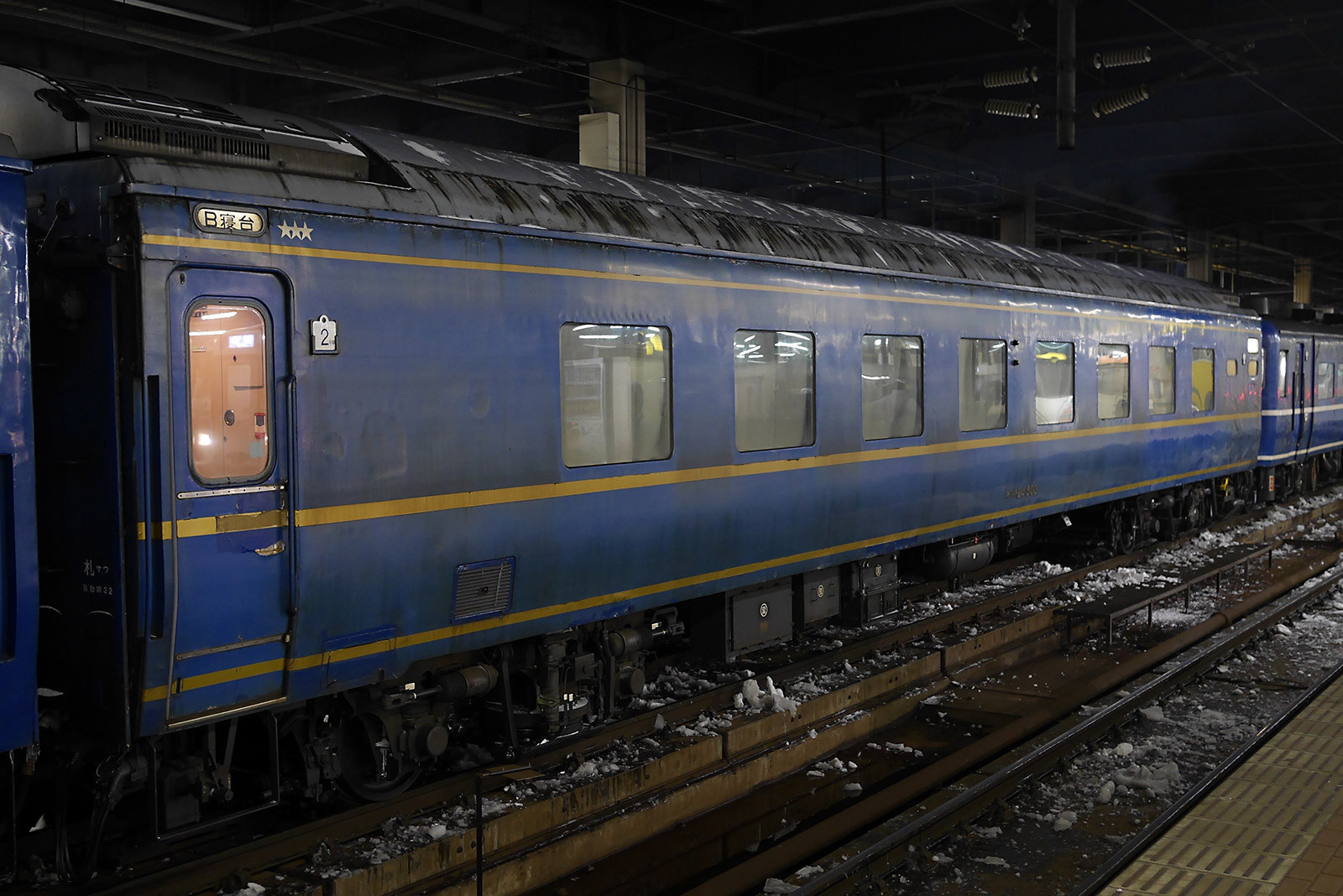 今日のはまなすは、寝台電源のスハネフ14の具合が悪いらしく、24系3両の前にスハフがくっついてました。それにしても…ひどい状態です。この車両はもともと14系でゴハチに牽かれて山陽線を走ったり、ゆうづるとして上野〜青森を往復していた車両らしく、1972年の新製から44年もの間、頑張ってきました。またきれいにしてあげたいものですが、このままお役御免でしょうか。